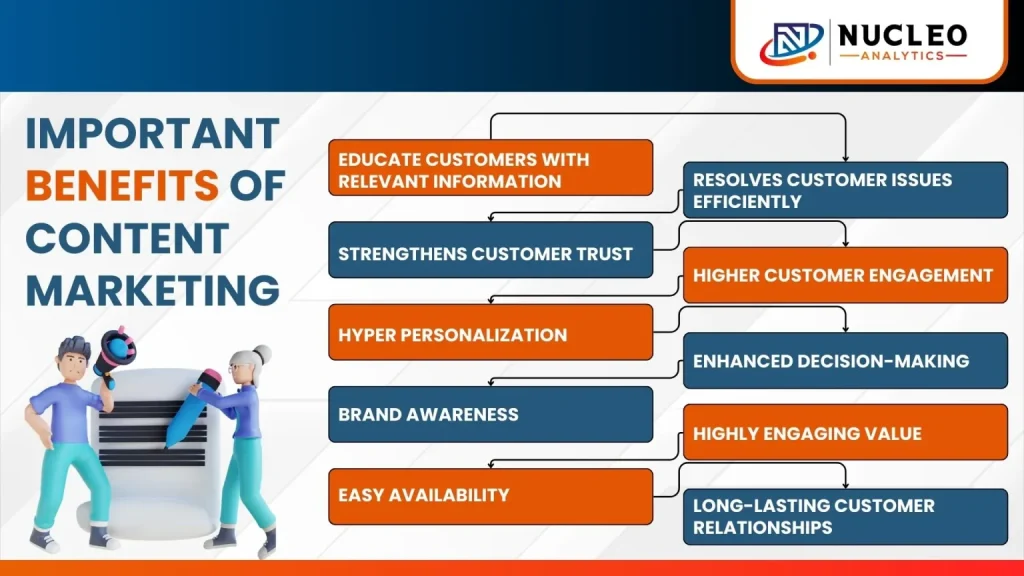 - Resolves customer issues efficiently: Content marketing addresses customer pain points and provides solutions, helping them overcome challenges and make informed decisions faster.