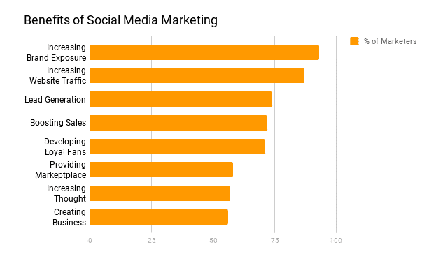 As per Statista, increased exposure is the leading benefit of social media marketing, followed by increased traffic and more leads.